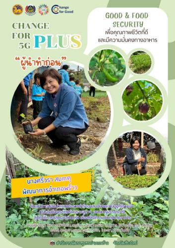 สำนักงานพัฒนาชุมชนอำเภอพร้าว ขอประชาสัมพันธ์ต้นแบบการน้อมนำแนวทางพระราชดำริของสมเด็จพระกนิษฐาธิราชเจ้ากรมสมเด็จพระเทพรัตนราชสุดาฯ สยามบรมราชกุมารี สู่ปฏิบัติการปลูกผักสวนครัว เพื่อสร้างความมั่นคงทางอาหาร ภายใต้การขับเคลื่อน "ปรับเปลี่ยนดี ชีวีมีสุข" (Change for 5G Plus)